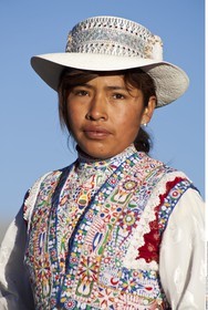 PERU / Puno / Lake Titicaca / Amantani Island / Quechua woman..© Oliver Bolch / Anzenberger Perou *** Peru