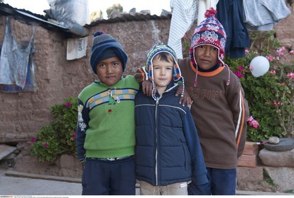 PERU / Puno / Lake Titicaca / Amantani Island / Tourist child playing with Quechua boys..© Oliver Bolch / Anzenberger Perou *** Peru