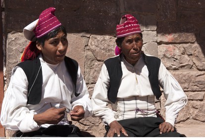 PERU / Puno / Lake Titicaca / Taquile Island / Two Quechua man..© Oliver Bolch / Anzenberger Perou *** Peru