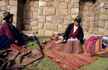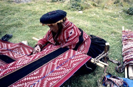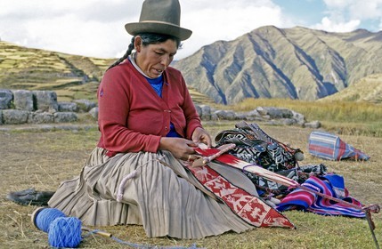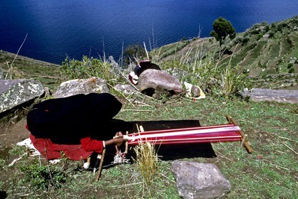 • PERU / Puno / Lake Titicaca / Taquile Island / Quechua woman / traditional weaving