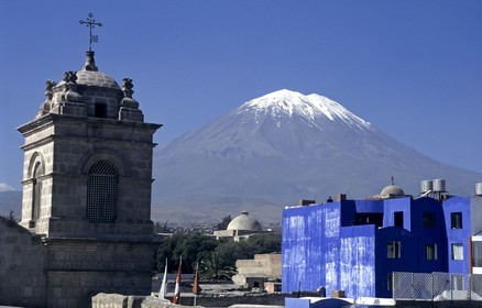 • PERU / Cusco / View across roofs of Cusco from Plaza San Cristobal with Nevado Auzangate (6.384 m) in the background..© Oliver Bolch / Anzenberger