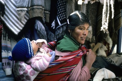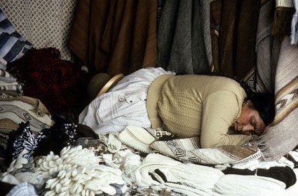 • Peru, Puno, Titicaca lake, traditional market, woman asleep