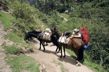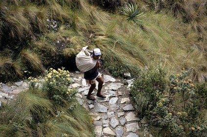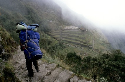 • Peru, Cusco, Inca trail, Pacamayo valley, a bearer