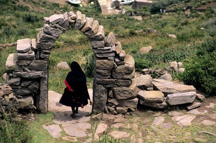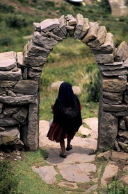 • PERU / Puno / Lake Titicaca / Taquile Island / View through stone arch