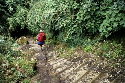 • Peru, Cusco, Inca trail, Phuyupatamarka, tropical forest, bearer