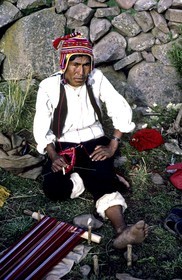 • PERU / Puno / Lake Titicaca / Taquile Island / Quechua man/weaving