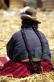 • PERU / Puno / Lake Titicaca / Floating islands of the Uros / Uro woman