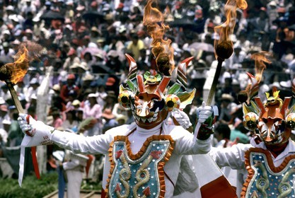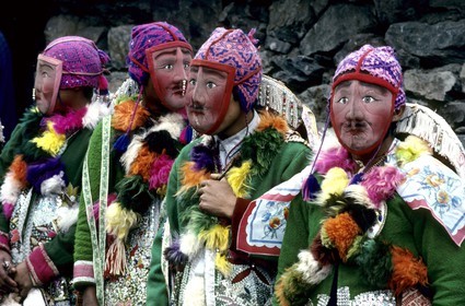 • PERU / Puno / Lake Titicaca / Taquile Island / Quechua men during Carnival