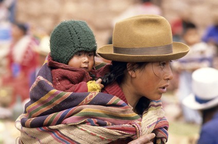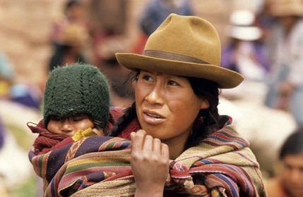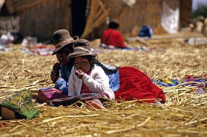 • PERU / Puno / Lake Titicaca / Floating islands of the Uros / Uro girl with her mother