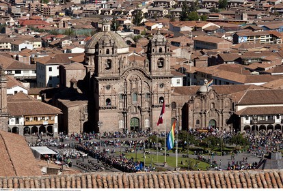 • PERU / Cusco / View across historic town of Cusco with Plaza de Armas and Compana church from Plaza San Cristobal..© Oliver Bolch / Anzenberger