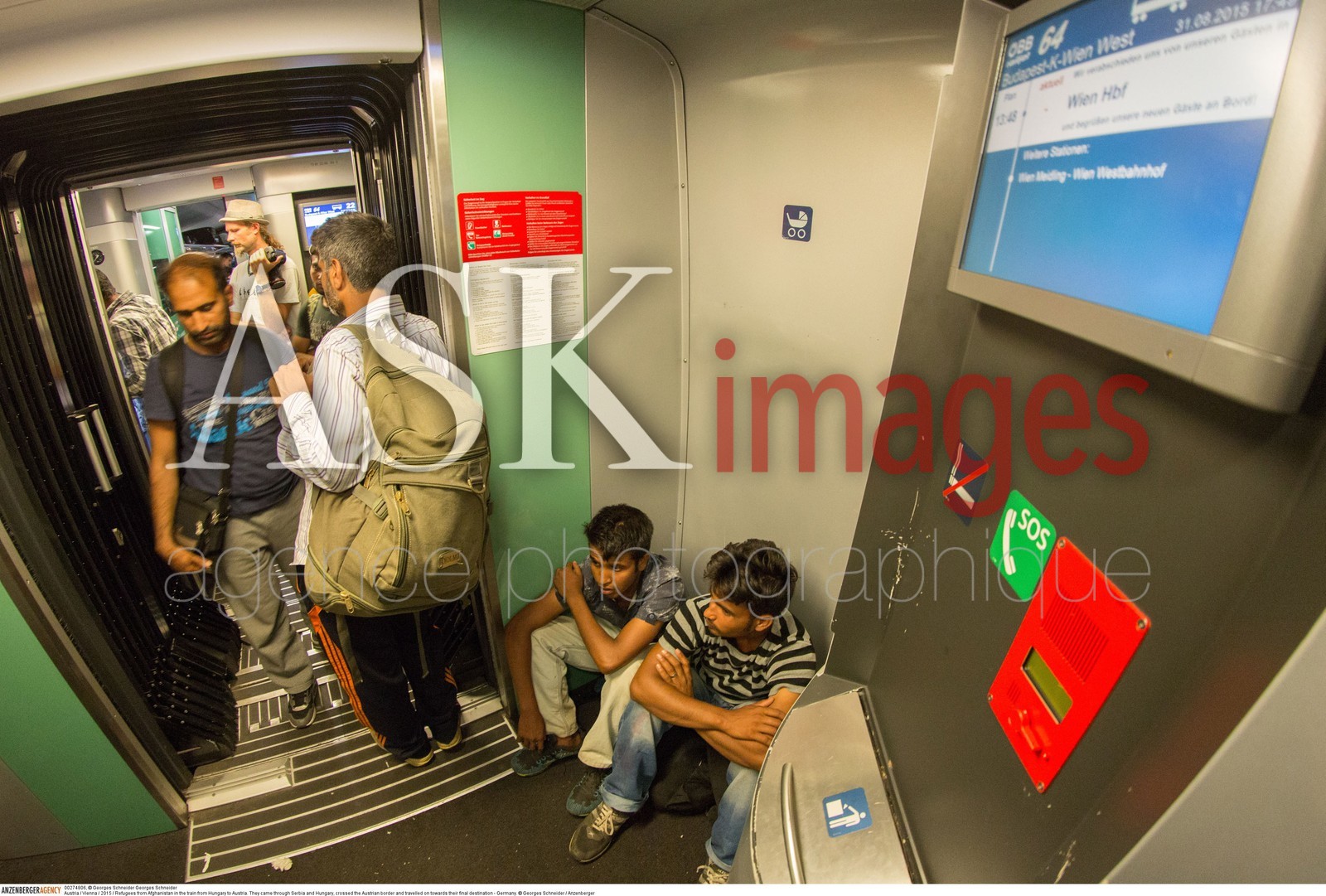 | Description | Austria / Vienna / 2015 / Refugees from Afghanistan in the train from Hungary to Austria. ..They came through Serbia and Hungary, crossed the Austrian border and travelled on towards their final destination - Germany...© Georges Schneider / Anzenberger |