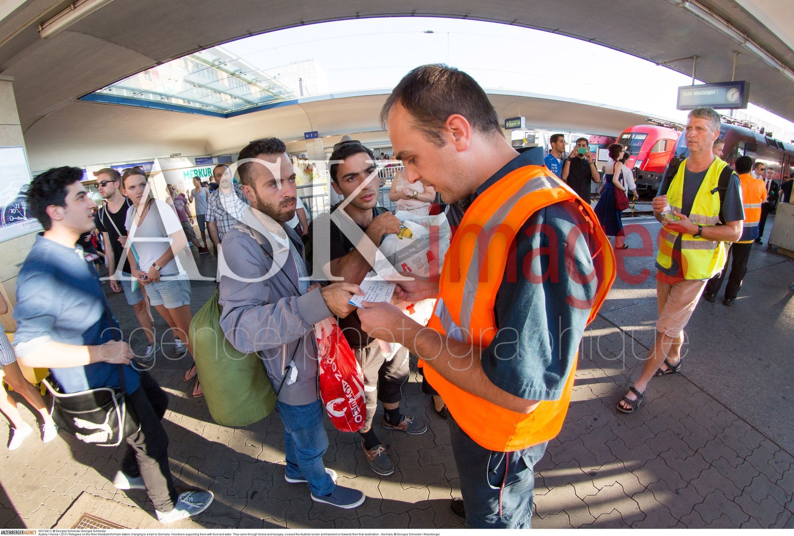 | Description | Austria / Vienna / 2015 / Refugees on the Wien Westbahnhof train station changing to a train to Germany. Volunteers supporting them with food and water...They came through Serbia and Hungary, crossed the Austrian border and travelled on towards their final destination - Germany...© Georges Schneider / Anzenberger |