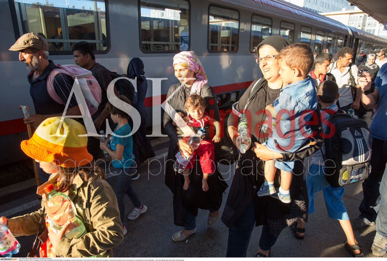 | Description | Austria / Vienna / 2015 / Refugees on the Wien Westbahnhof train station changing to a train to Germany. ..They came through Serbia and Hungary, crossed the Austrian border and travelled on towards their final destination - Germany...© Georges Schneider / Anzenberger |