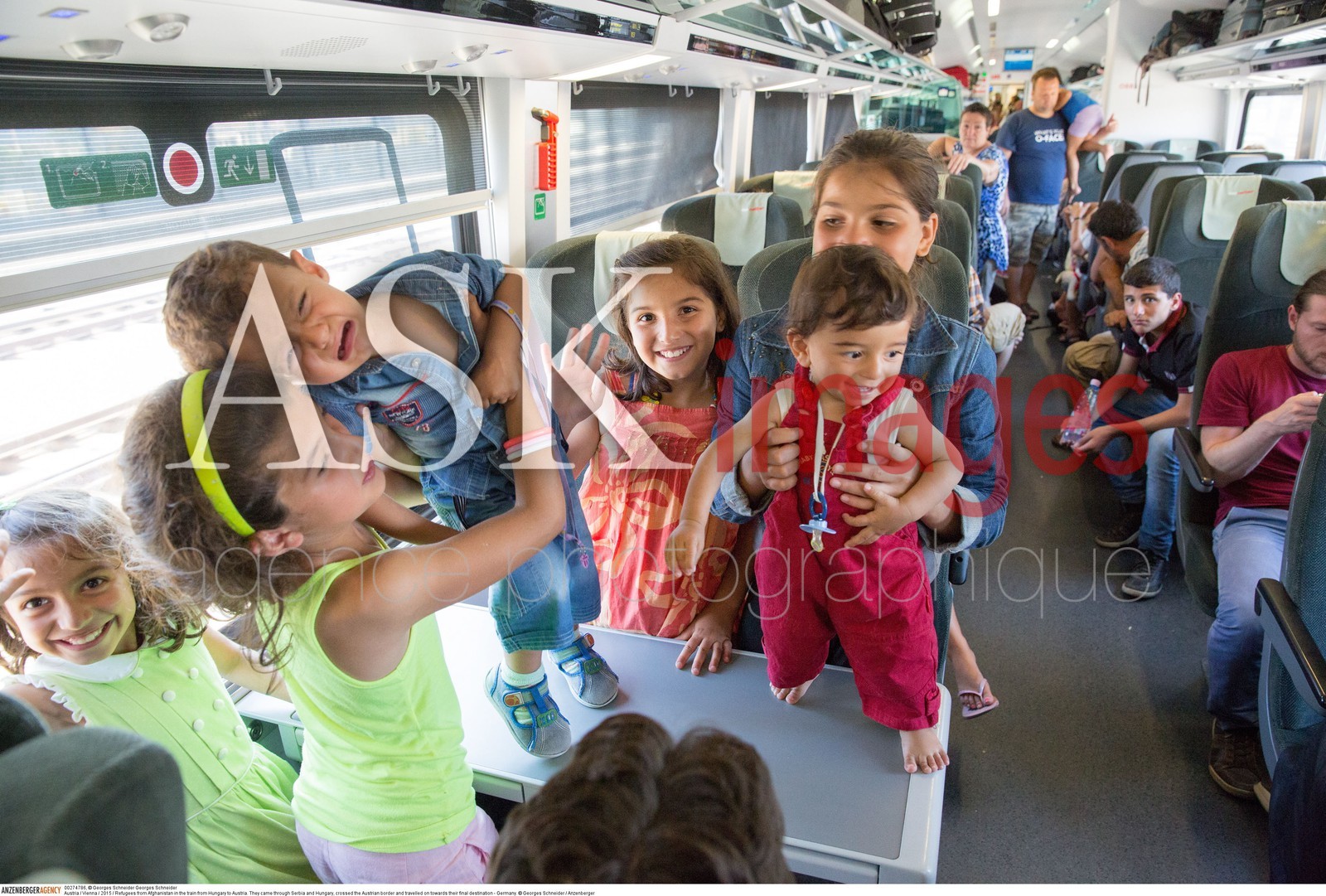 | Description | Austria / Vienna / 2015 / Refugees in the train from Hungary to Austria. ..They came through Serbia and Hungary, crossed the Austrian border and travelled on towards their final destination - Germany...© Georges Schneider / Anzenberger |