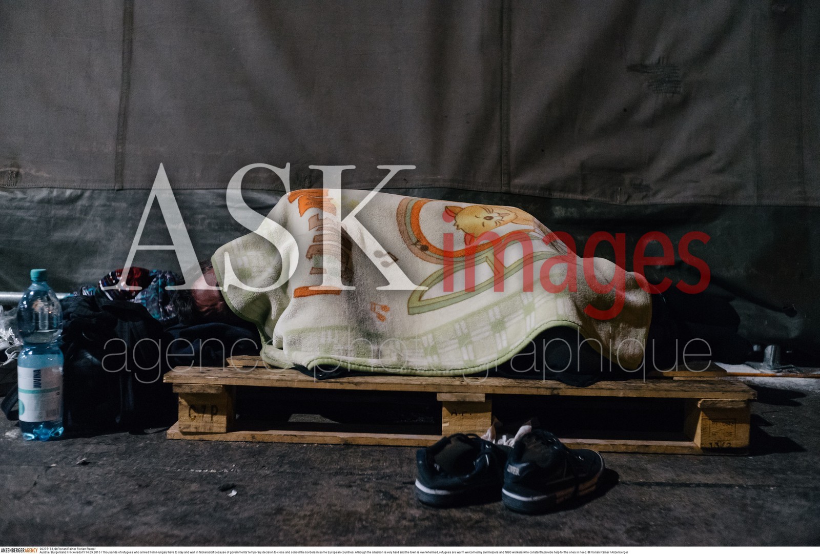| Description | Austria / Burgenland / Nickelsdorf / 14.09.2015 / Thousands of refugees who arrived from Hungary have to stay and wait in Nickelsdorf because of governments' temporary decision to close and control the borders in some European countries. Although the situation is very hard and the town is overwhelmed, refugees are warm welcomed by civil helpers and NGO workers who constantly provide help for the ones in need...© Florian Rainer / Anzenberger |