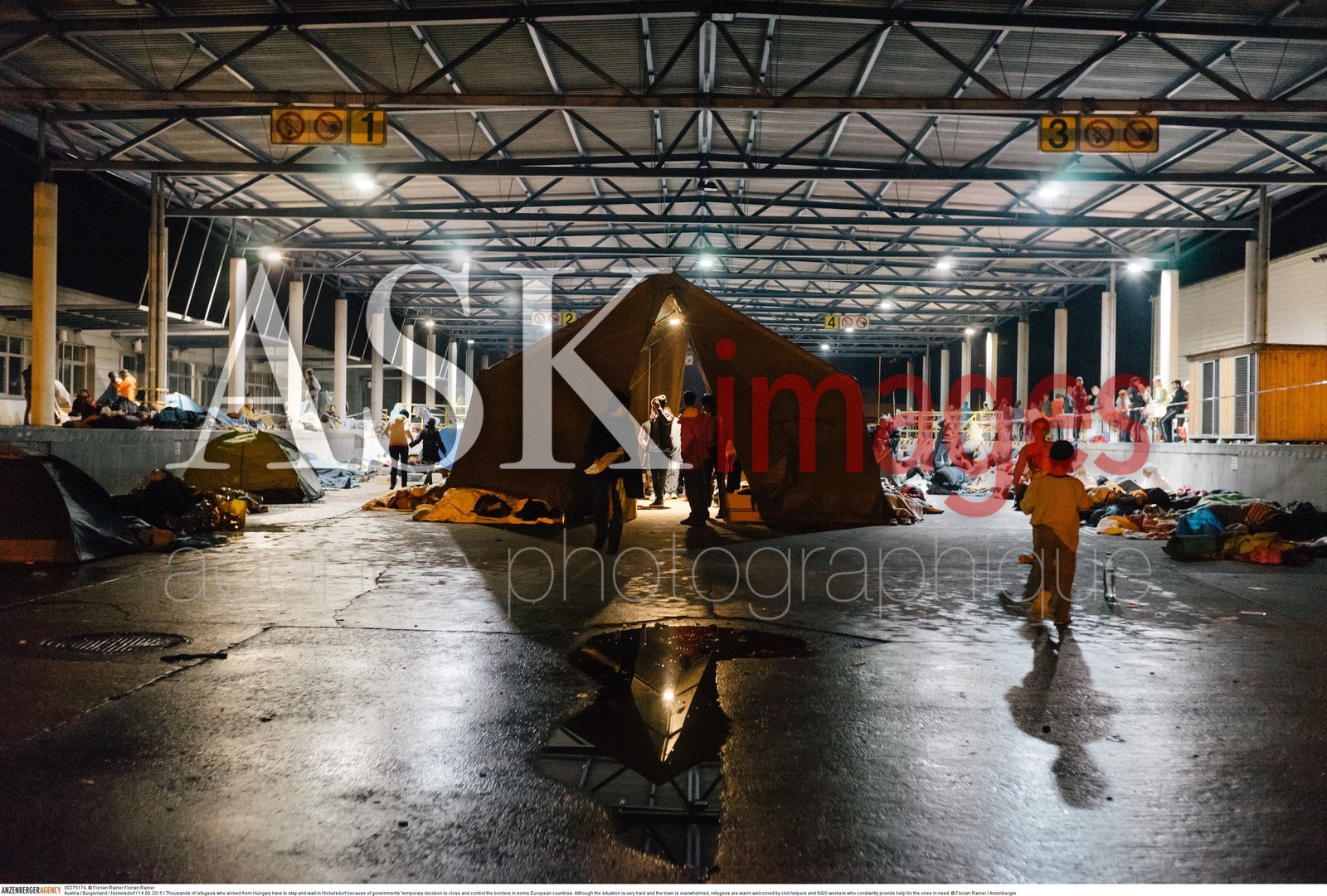 | Description | Austria / Burgenland / Nickelsdorf / 14.09.2015 / Thousands of refugees who arrived from Hungary have to stay and wait in Nickelsdorf because of governments' temporary decision to close and control the borders in some European countries. Although the situation is very hard and the town is overwhelmed, refugees are warm welcomed by civil helpers and NGO workers who constantly provide help for the ones in need...© Florian Rainer / Anzenberger |