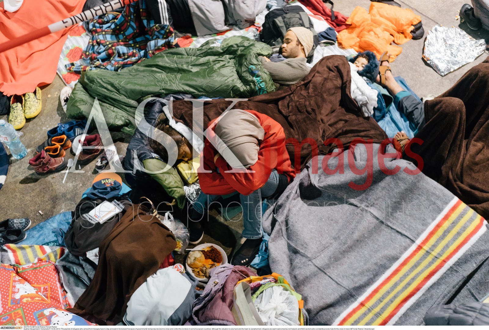 | Description | Austria / Burgenland / Nickelsdorf / 14.09.2015 / Thousands of refugees who arrived from Hungary have to stay and wait in Nickelsdorf because of governments' temporary decision to close and control the borders in some European countries. Although the situation is very hard and the town is overwhelmed, refugees are warm welcomed by civil helpers and NGO workers who constantly provide help for the ones in need...© Florian Rainer / Anzenberger |