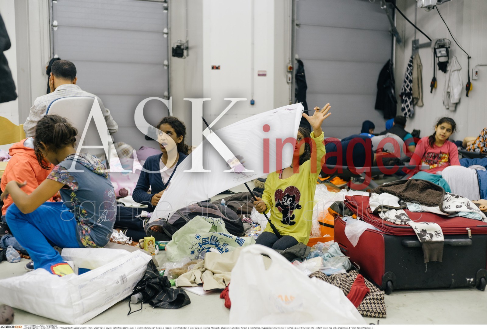 | Description | Austria / Burgenland / Nickelsdorf / 14.09.2015 / Thousands of refugees who arrived from Hungary have to stay and wait in Nickelsdorf because of governments' temporary decision to close and control the borders in some European countries. Although the situation is very hard and the town is overwhelmed, refugees are warm welcomed by civil helpers and NGO workers who constantly provide help for the ones in need...© Florian Rainer / Anzenberger |