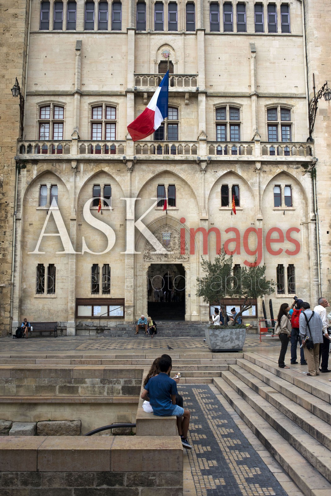 | Description | People in front of Town hall square. Pedestrian shopping street in old city central Narbonne, Languedoc-Roussilon, South of France. |