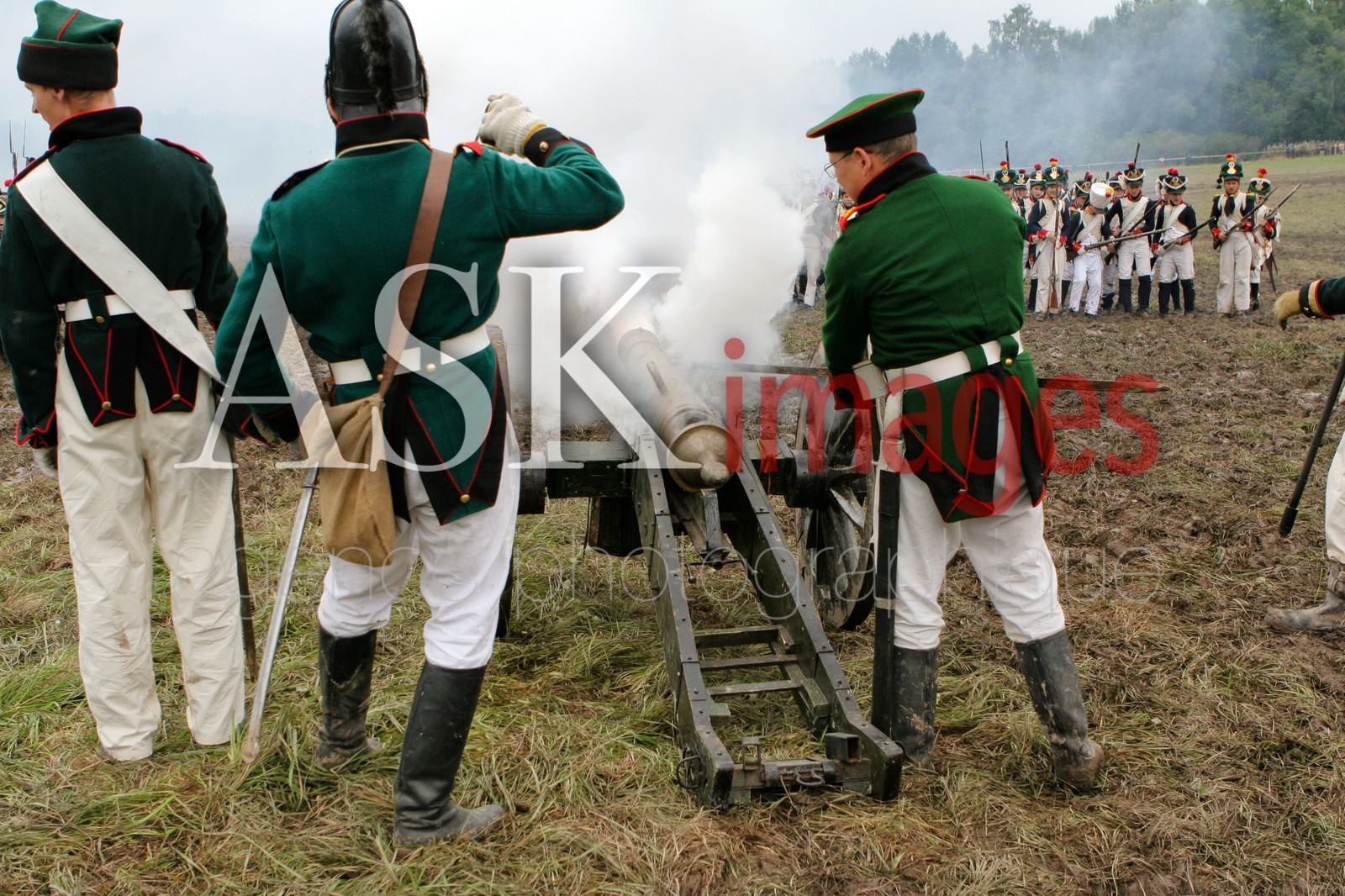 | Description | Russian soldiers, Reconstruction of The Battle of Borodino, Every year the anniversary of the 1812 battle is celebrated on Borodino Field Day, when the battle is actually reenacted. People playing the French and Russian soldiers dress in period uniforms, cannons roar and smoke rises from the battlefield. A religious ceremony is held after the battle to give thanks for Napoleon’s defeat. |