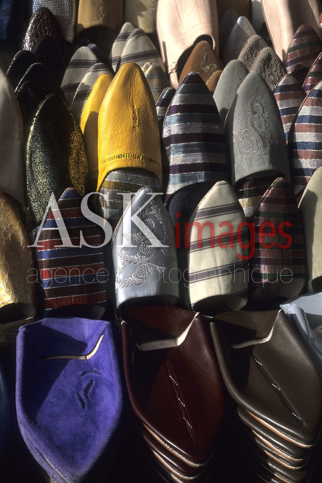 | Description | Graphic image of Morocco shoes stacked for sale on streets in Casablanca Morocco Africa. ©Bill Bachmann / The Image Works |