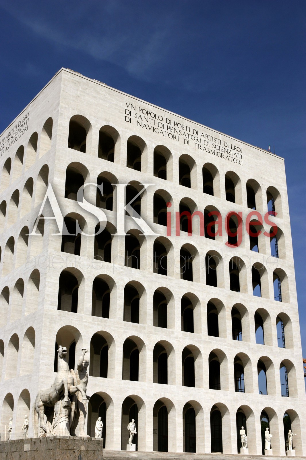 | Description | Rome, EUR district: the Colisee Square (1938) draws its great white mass punctuated by six storeys of arches above the Tiber. |