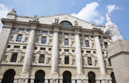 Sculpture L.O.V.E by Maurizio Cattelan, in front of the stock exchange, on piazza Affari, Milan, ItalySculpture L.O.V.E by Maurizio Cattelan, in front of the stock exchange, on piazza Affari, Milan, Italy