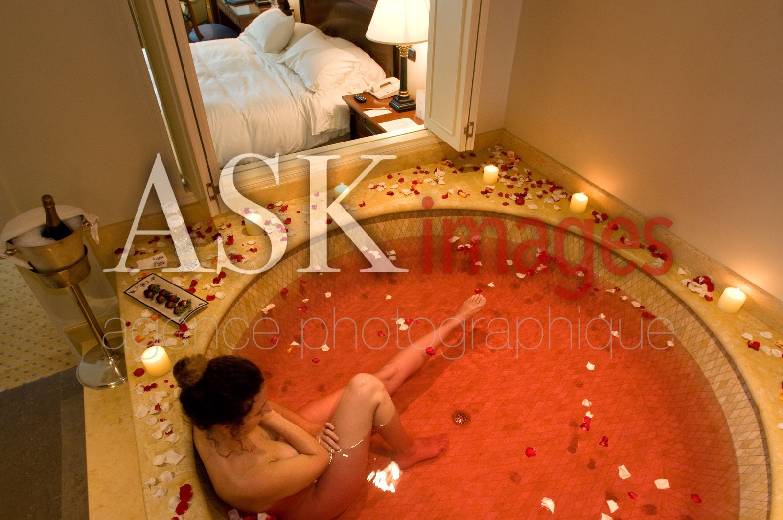 | Description | Inside one of the rooms at the Miraflores Park Hotel by Orient Express Belmond, Lima, Peru, It has a fabulous aphrodisiac bath in a circular roman tub with rose petals and some magic dust, which make you enjoy sensuality of the moment, together, champagne and strawberries dipped in chocolate |