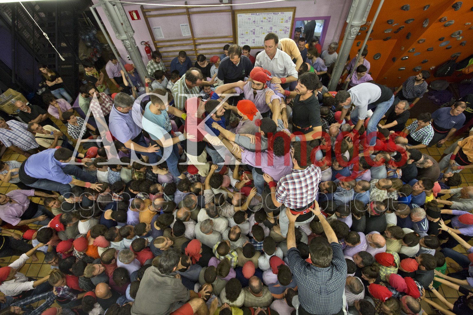 | Description | Spain, Tarragona, the XXV contest of Castells in Tarragona, Catalonia, is held in the arena Tarraco placa, the training in Colla Jove Xiquets of Tarragona |