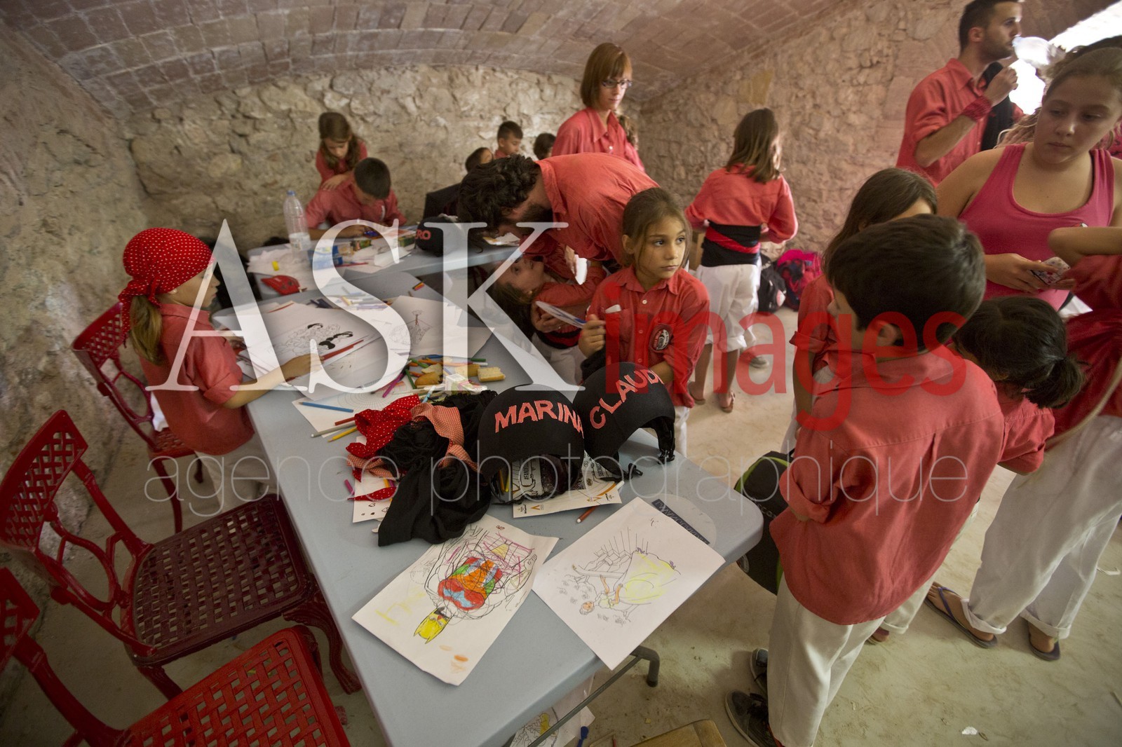 | Description | Spain, Tarragona, the XXV contest of Castells in Tarragona, Catalonia, is held in the arena Tarraco placa, children are resting before contest s |