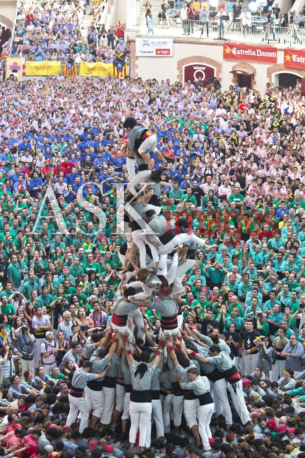 | Description | Spain, Tarragona, the XXV contest of Castells in Tarragona, Catalonia, is held in the arena Tarraco placa, the castell is falling down |