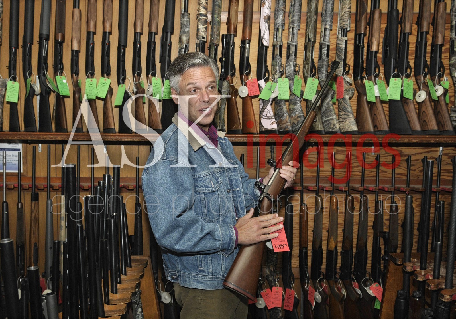 | Description | Hooksett, New Hampshire..Jon Huntsman, former ambassador to China, holds a rifle at Riley's Sports Shop where firearms are sold. This event happened during his first swing through New Hampshire as a prospective presidential candidate. ©Chris Fitzgerald / Candidate Photos / The Image Works |