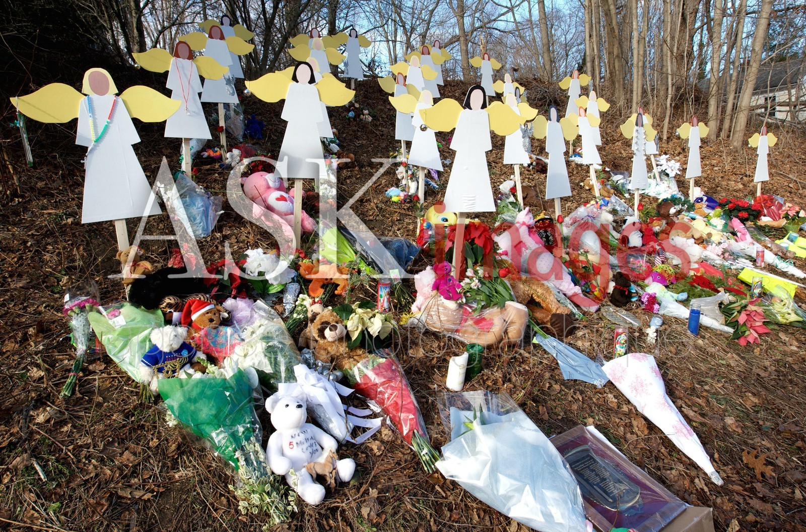 | Description | Newtown, CT: December 19, 2012. Wooden angel cutouts made to represent the victims of the Sandy Hook Elementary School massacre are displayed along the roadside on December 19, 2012 in Newtown, Connecticut. Last week the gunman, Adam Lanza, opened fired inside the school, killing 20 students and 6 adults, before turning the gun on himself. It is believed that Lanza suffered from mental illness and used his mother's weapons to carry out the shootings.. |