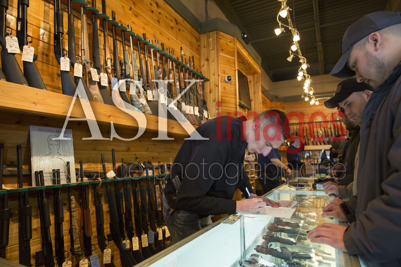 | Description | Milford, Michigan - A worker looked over paperwork for a gun buyer's background check as customers crowded the Huron Valley Guns store on Gun Appreciation Day. Pro-gun groups gathered at gun stores across the nation to buy weapons and to oppose proposed limits on gun ownership. Assault weapons at this store were in such short supply that customers had to enter a lottery for the right to buy one..January 21 , 2013 |