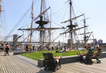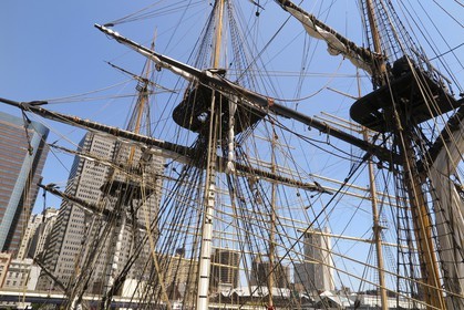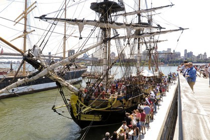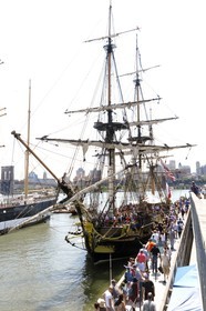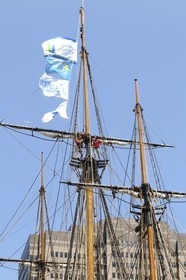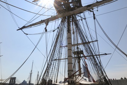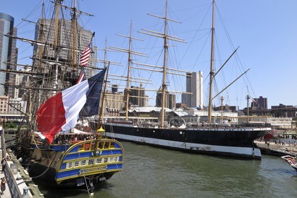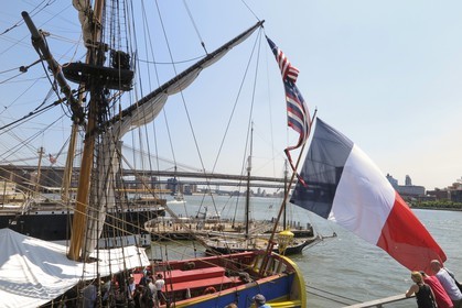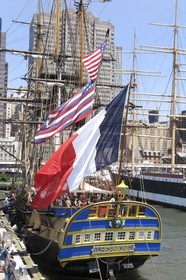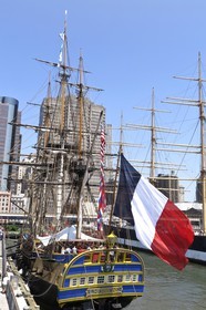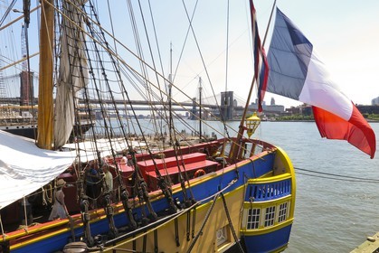 The three mats the Hermione, exact replica of the Lafayette 's boat in New York, USA French fregate, l'Hermione