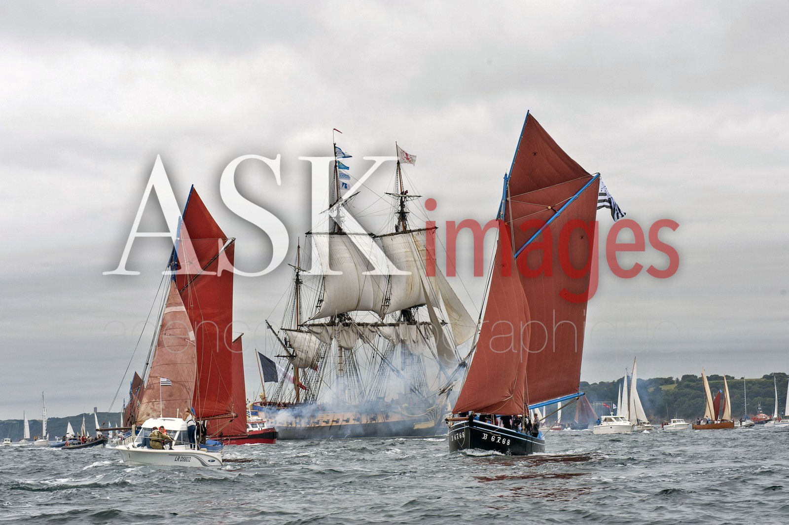 | Description | The three mats the Hermione, exact replica of the Lafayette 's boat in Goulet de Brest, Bretagne, France, August 2015 |