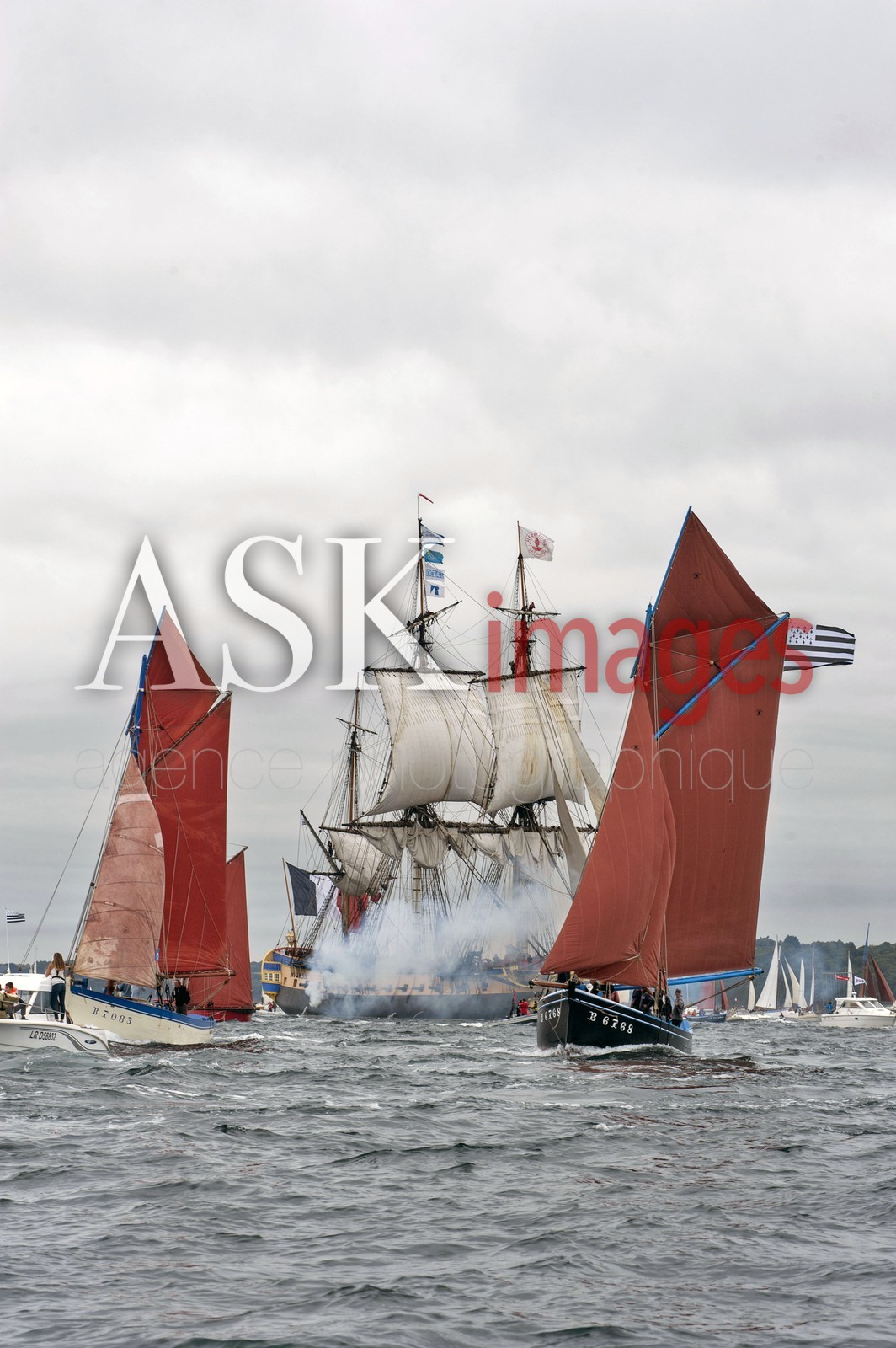 | Description | The three mats the Hermione, exact replica of the Lafayette 's boat in Goulet de Brest, Bretagne, France, August 2015 |