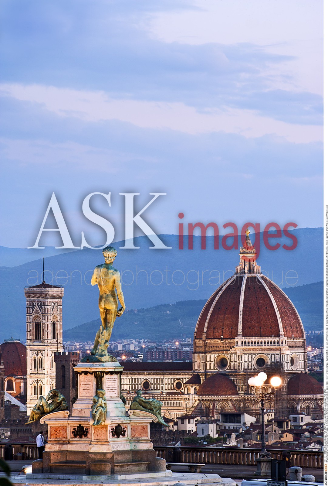 | Description | ITALY / Tuscany / Florence / view from Piazzale Michelangelo ( Michelangelo Square ) with the David statue ( copy ) by Michelangelo Buonarroti to the old town with the Cattedrale di Santa Maria del Fiore ( the cathedral ) and the Campanile di Giotto ( Giotto bell tower , left )..© Christina Anzenberger Fink & Toni Anzenberger / Anzenberger |