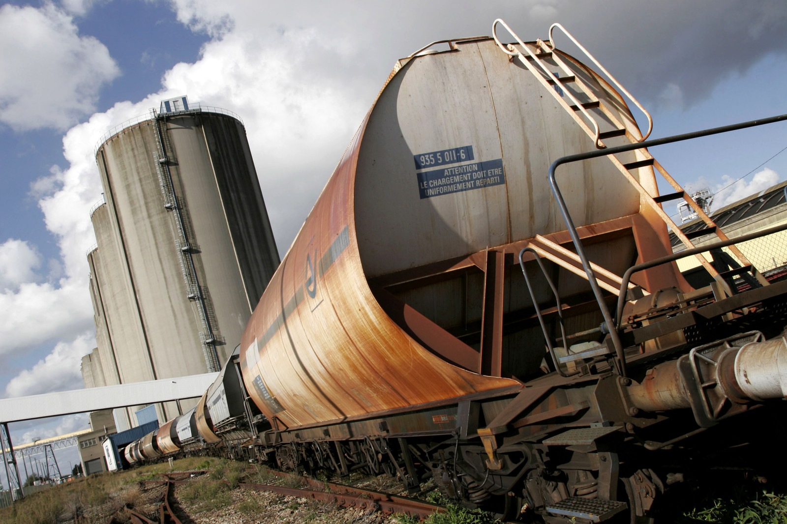 Freight wagons outside a silo, Port of Le Havre, Seine Maritime, France