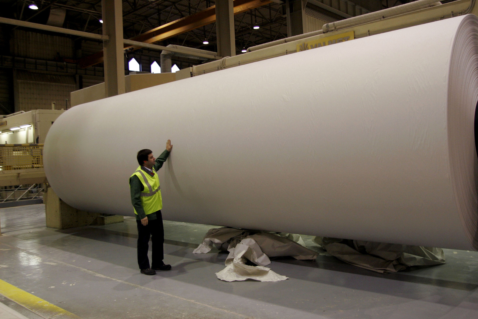 | Description | Worker examining a paper roll at the Chapelle Darblay paper mill of UPM Kymmene, Grand Couronne, Seine Maritime, France |