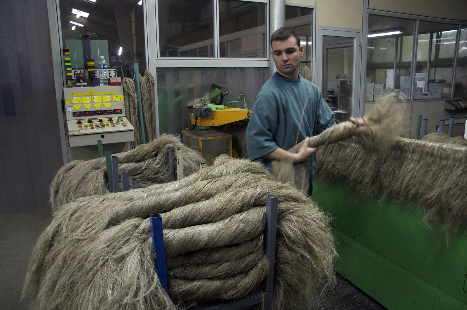 | Description | Nicolas Jourdaine is sorting the scutched flax fibers at the end of the scutching line, Terre de Lin, Saint Pierre le Viger, Seine Maritime, France |