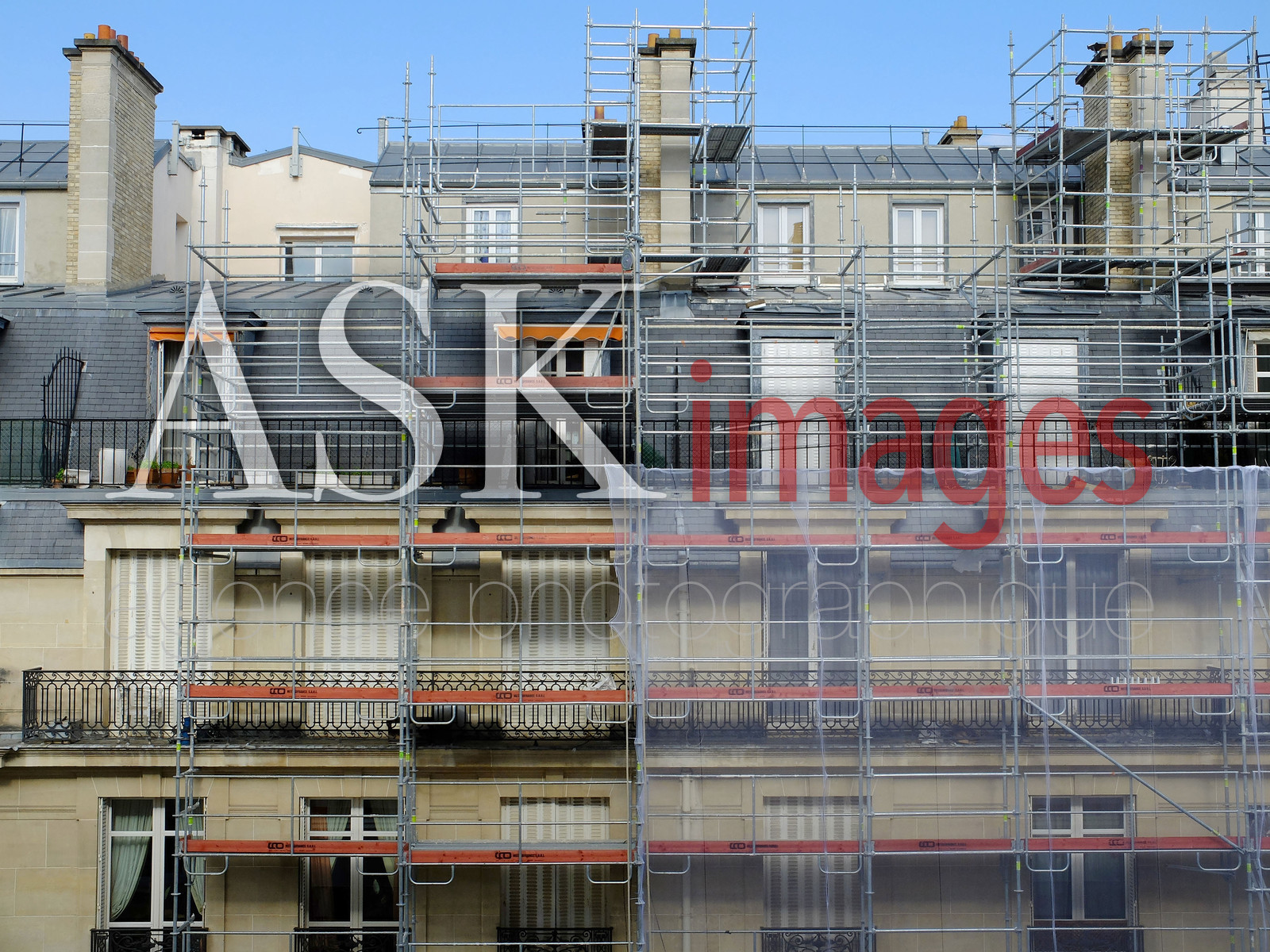 Echafaudage ravalement immeuble, Paris *** Scaffolding building renovation, Paris