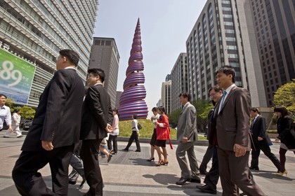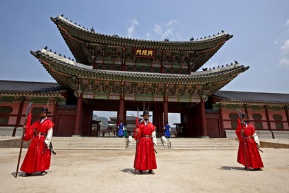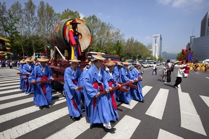 *** Local Caption *** la procession se rend au temple de JONGMYO pour le rituel en l'honneur de la dynastie JOSEON South Korea