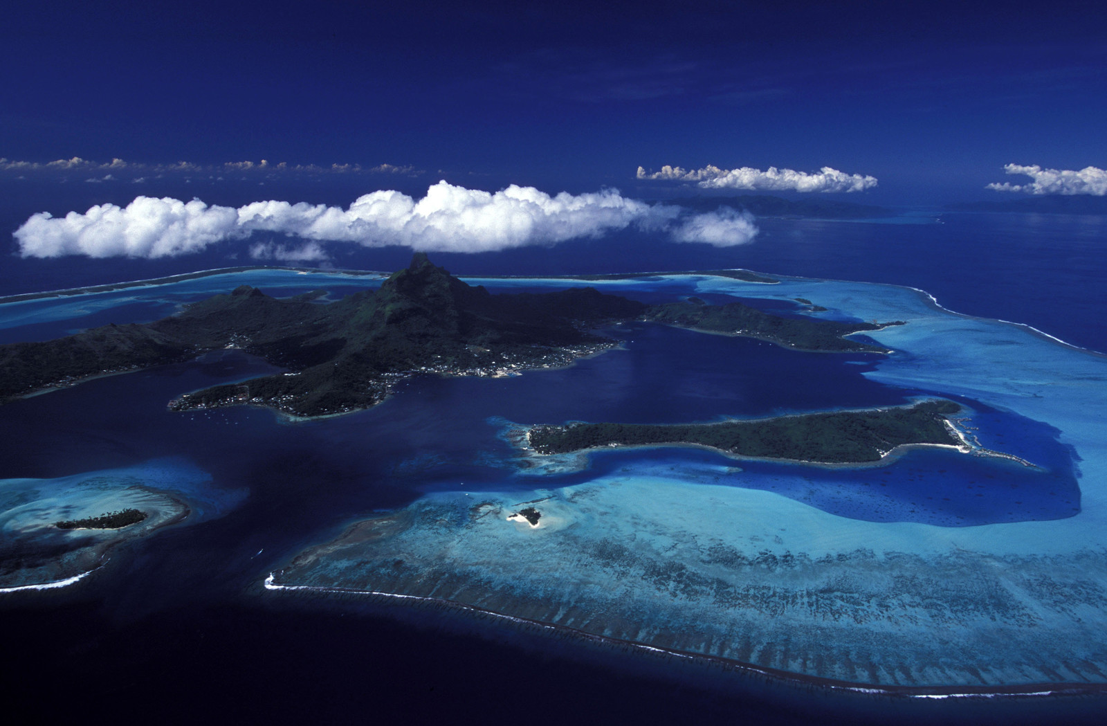 Vue aerienne Bora-Bora *** Bora Bora island, French Polynesia.