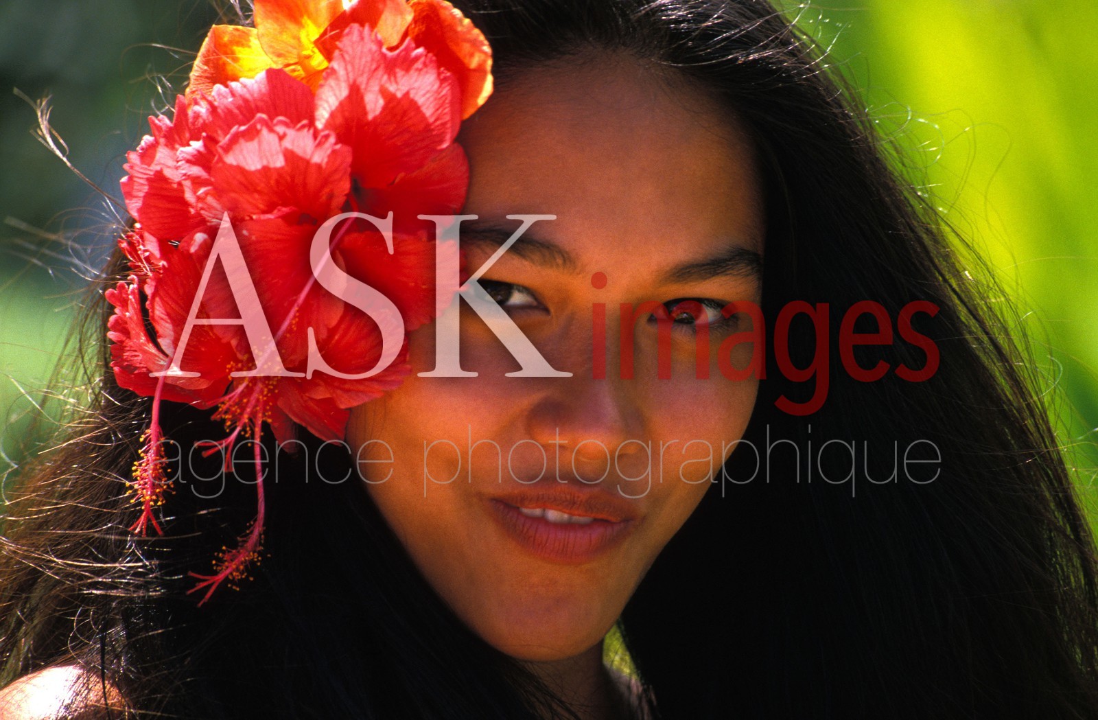 | Description | Portrait of polynesian woman, Tahiti, French Polynesia |