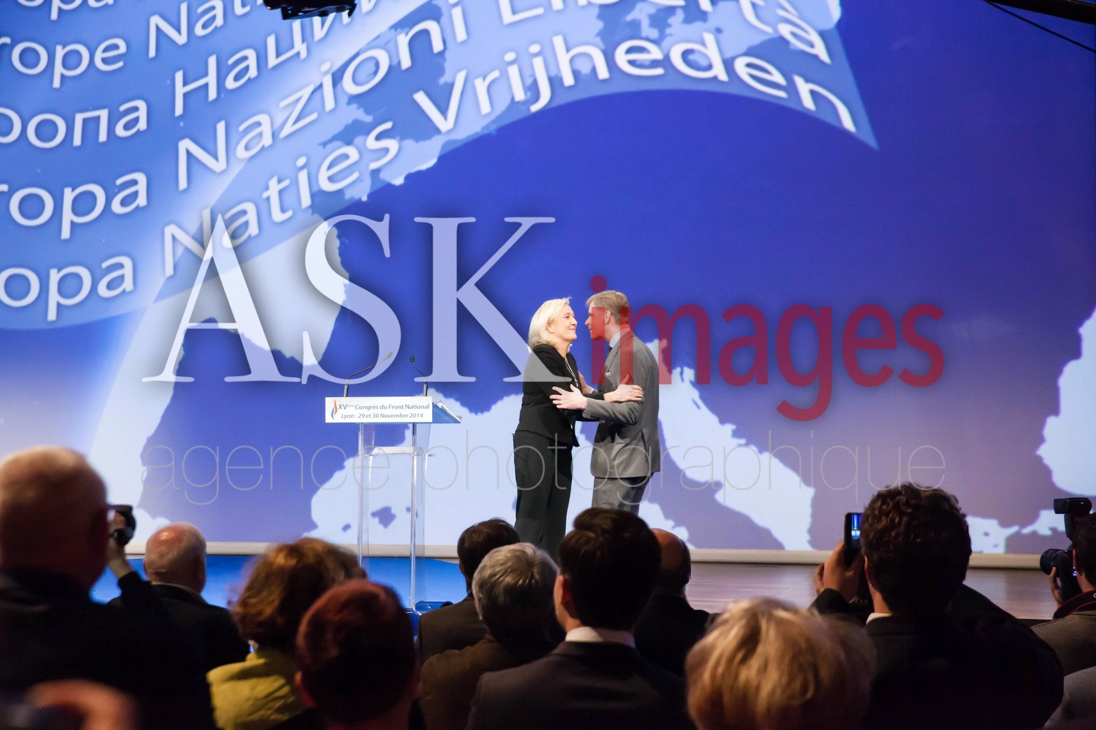 | Description | Marine Le Pen with Philips Claey president of the flemish Vlamm Belang Parti during the Congress of the Front National, Lyon November 2014 |