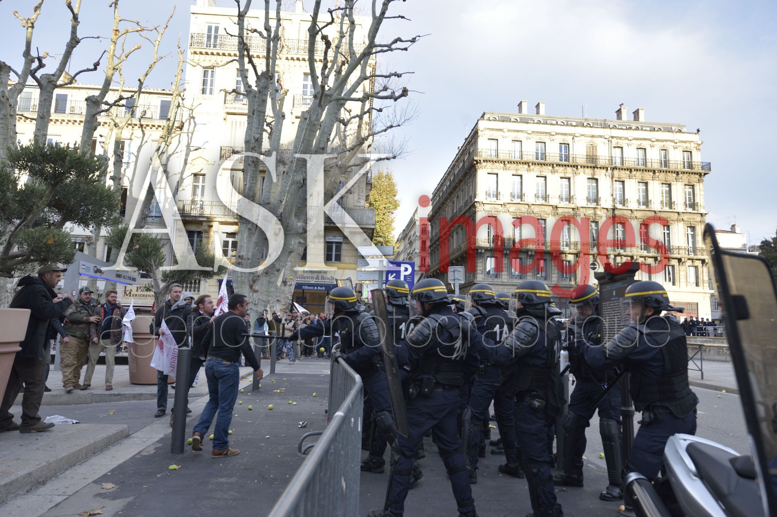 | Description | Marseille, Manifestation des Agriculteurs, Riziculteurs, Eleveurs ... à Marseille le mercredi 5 Novembre 2014 sur le vieux port et devant la préfecture. Les manifestants décident d’affronter les C R S mais ne parviendrons pas à franchir le cordon des forces de l'ordre. |