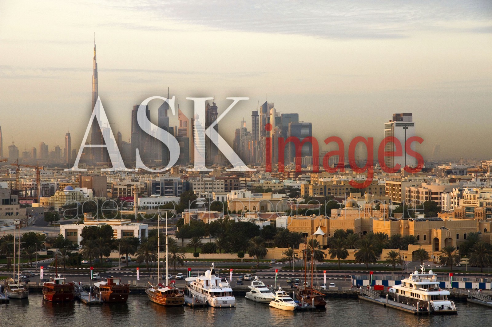 Dubai. the town, Burj Khalifa tower and harbour