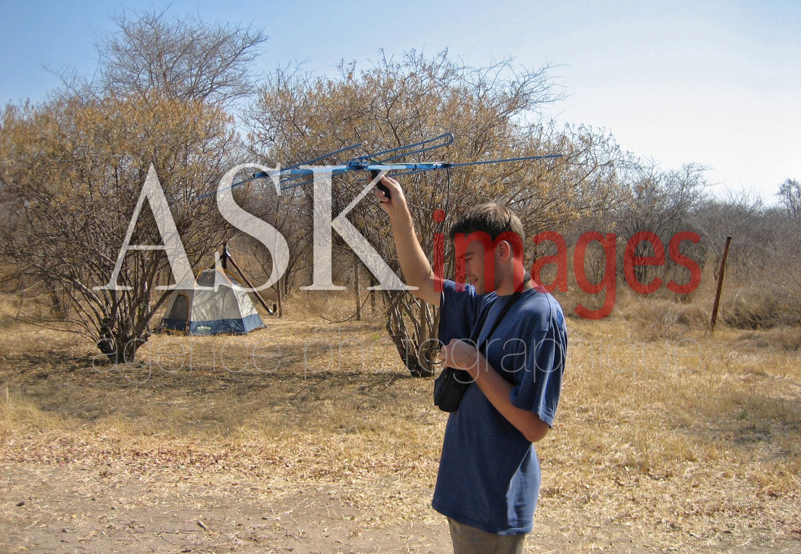 | Description | ONG : un participant essayant de se familiariser avec le systeme de localisation des lions portant un collier emetteur *** Volonteer mission : a volonteer during a training to learn how to locate with an aerial a lion wearing a transmitting collar |