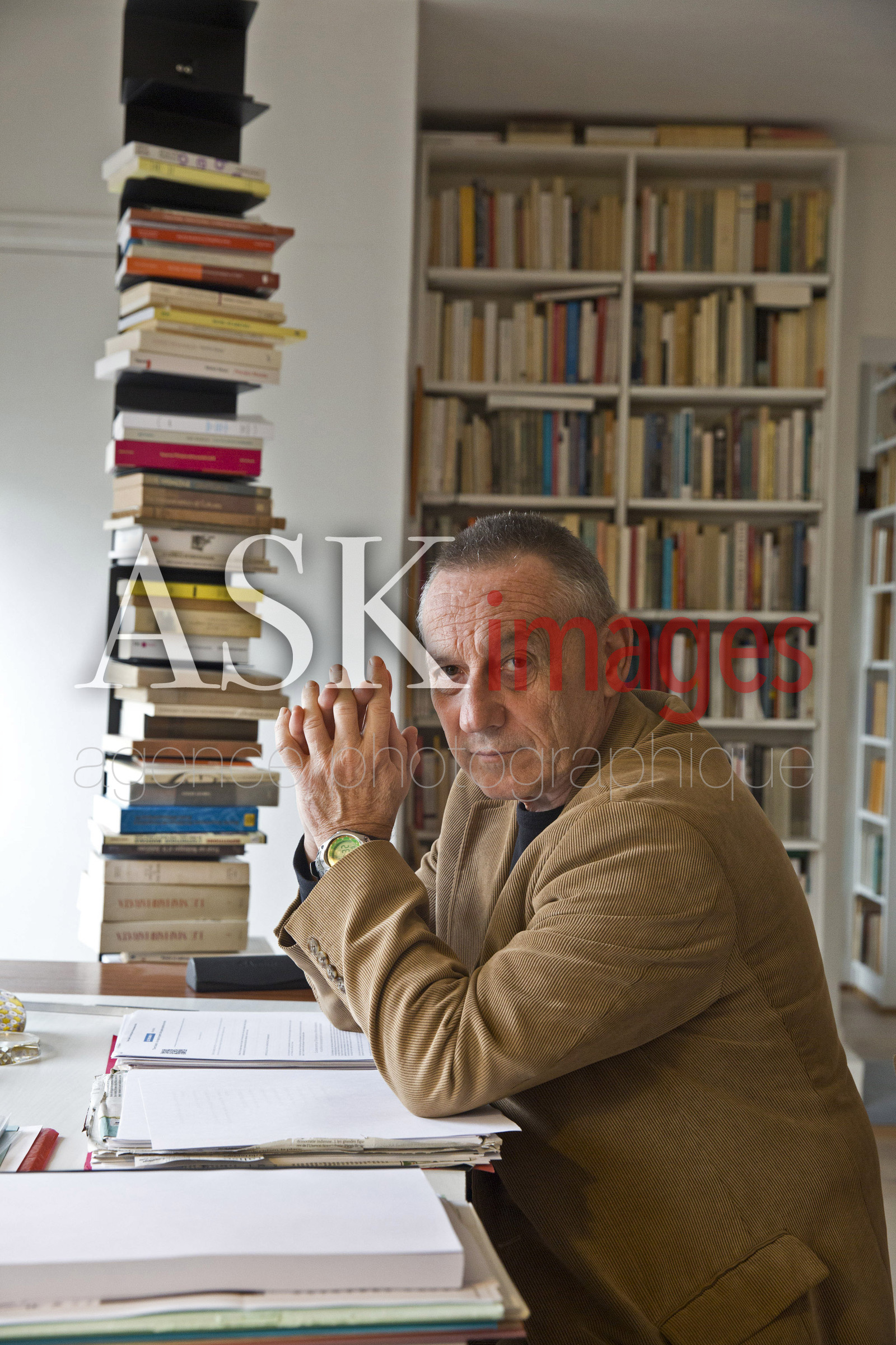 French philosophe Yves Michaud in his apartment, Paris
